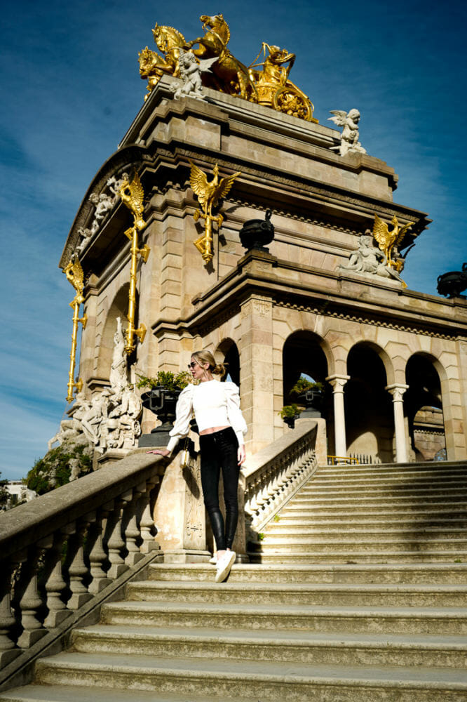 I was feeling especially internationally inspired while walking around the gorgeous grounds of the Parc de la Ciutadella in Barcelona last month. The Cascada Monumental is a fountain designed by Gaudi located inside the park. Here we snuck in early to catch the fountains at a quiet time before people were heading to work in the morning.